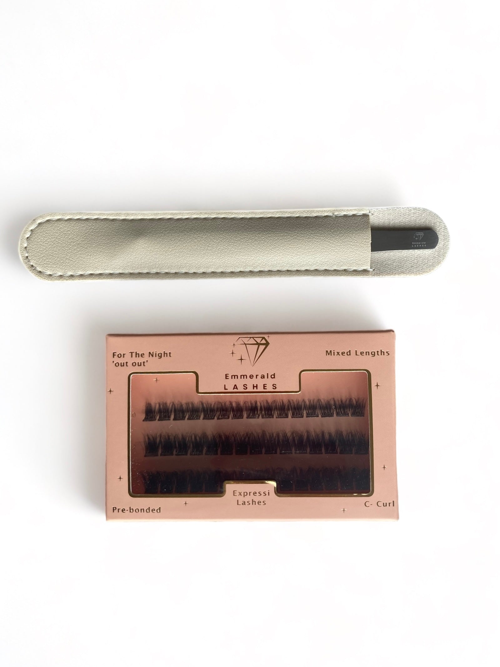 The style 'for the night out out' is a full on glam lash for those that prefer bigger, bolder lashes. They come pre-bonded so they are ready to apply. Expressi lashes come ready to apply with a pliable adhesive. Just pop them straight onto your lashes with your applicator tool.
